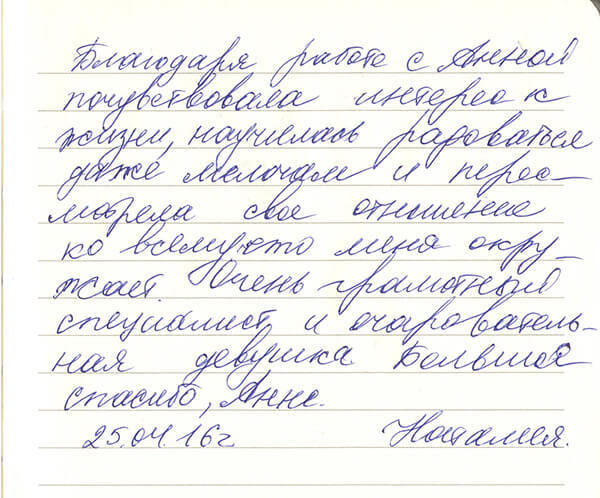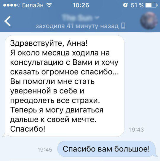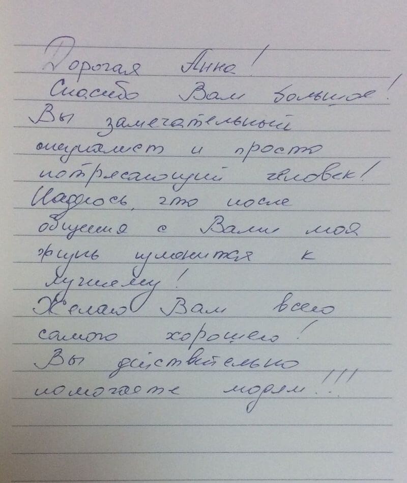 Если вы хотите выразить благодарность за проделанную работу наших специалистов и поделиться историей о том, как изменилась ваша жизнь после психологических консультаций, я также буду рада услышать вас по указанному номеру. Спасибо!